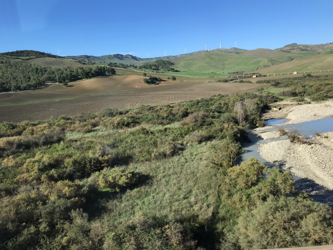 Since I’m writing this, you obviously know that we made it to the bus alive, and we took the two-plus hour ride to Agrigento. The day was beautiful, and no sooner were we on the bus, than someone fell asleep. I, on the other hand, spent most of the time looking out of the windows at the rolling hills and plowed farmland that draped over them. I could see where the flooding had occurred last weekend as there were still some big pockets of water in various places.