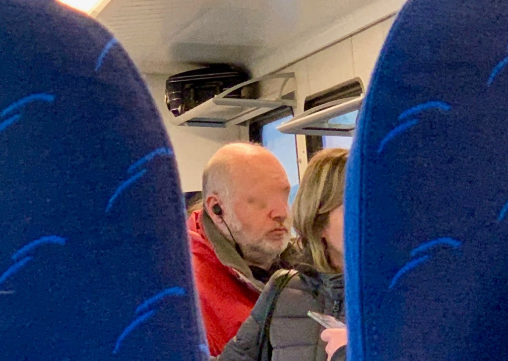 At the next stop, I got up to see if there were any empty seats ahead of us, but the train was full. Just before the third stop, I noticed a man and woman putting on jackets about 10 rows ahead of us, and I told Kelly I was taking off as soon as their butts were out of their seats. “I’ll tackle anyone who gets in my way, I told her as I shot down the aisle. We were in their empty seats before the train had even stopped.