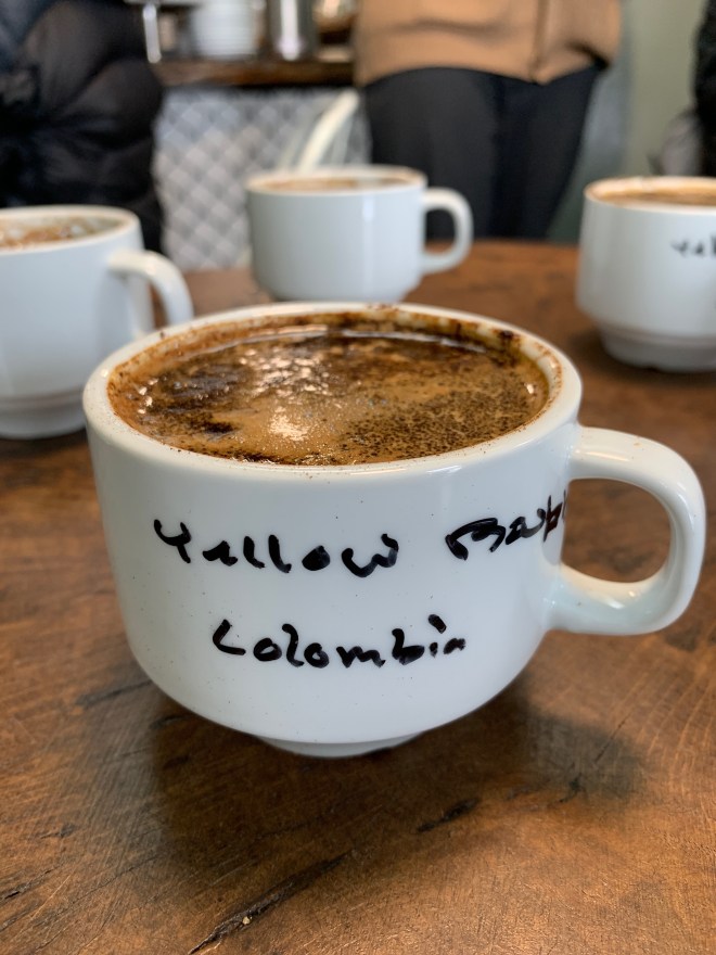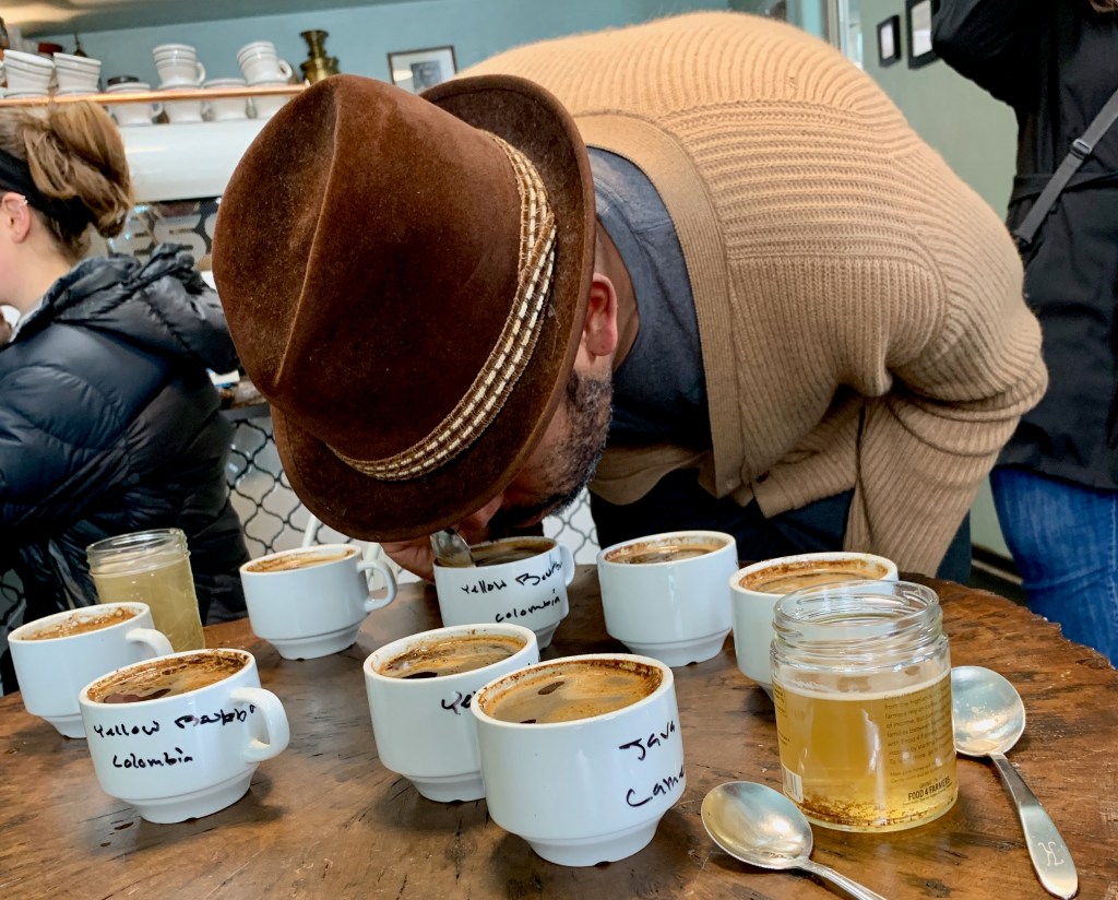 Equiano Coffee Company in Eugene hosted a coffee cupping for us on our last morning in Oregon. Coffee cupping or cup tasting, is coffee tasting, a procedure used by coffee producers and buyers worldwide to test the quality of a batch of coffee. An official taster is as important to the coffee world as a sommelier is to the wine world. Likewise, coffee drinkers participate in coffee cupping as wine drinkers participate in wine tasting.