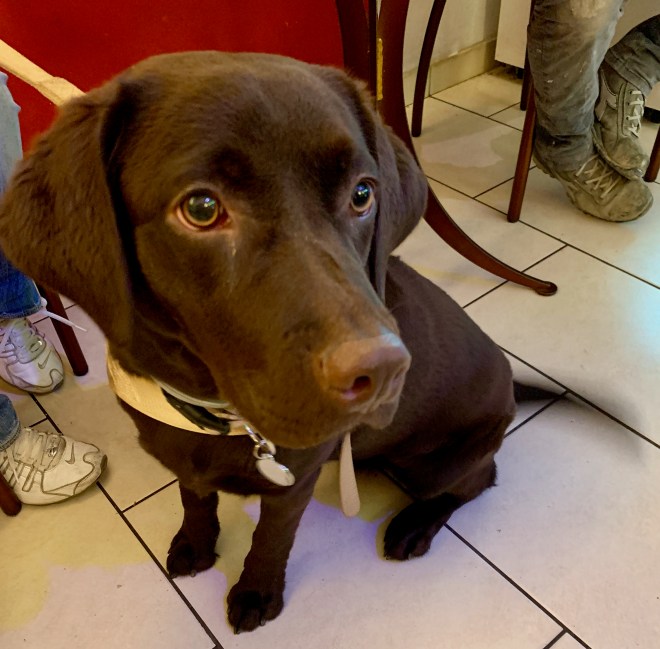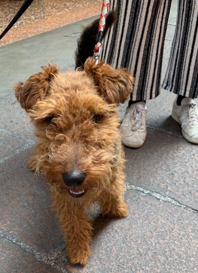 His owners, whose names I don’t know, told me today that he goes everywhere with them. “Dappertutto (everywhere),” the woman said. I can understand why.