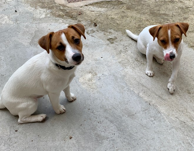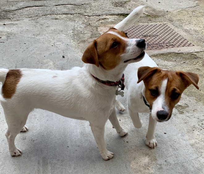 Shakur (left) and Cora (right) are two Jack Russells that live in Florence. They belong to people who own a condo that shares the same courtyard with the condo we rented, and when they were out, they would run to greet me when they saw me come through the door. They were quite noisy, so Emma was always trying to round them up.