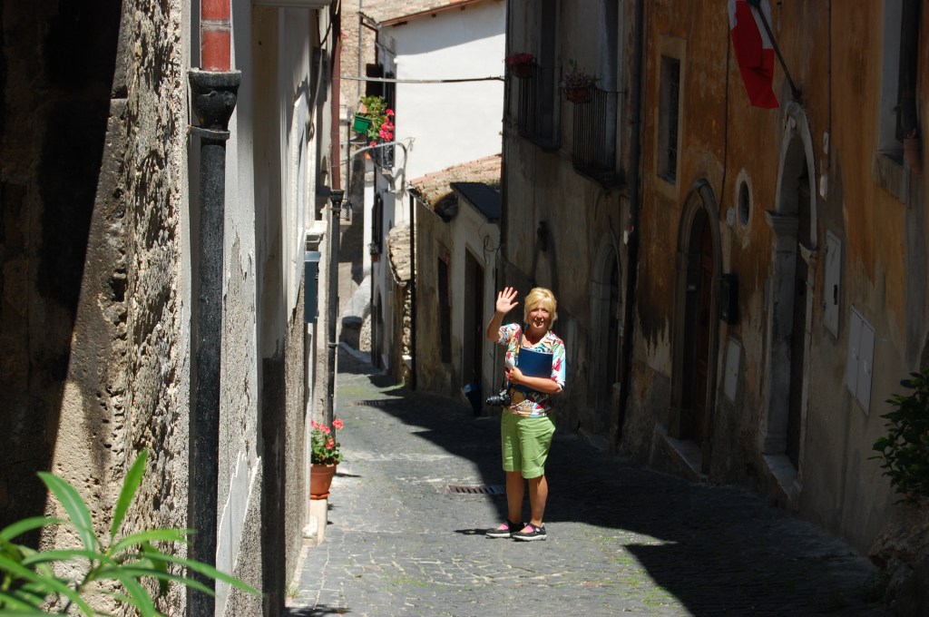 The town’s streets are quite narrow, as you can see from the photos above. We’ve driven up to the main piazza in town and have had to hold the side mirrors in so they don’t scrape the buildings. If someone is going down and another driving up, one of the drivers gets to back up until he/she finds a place or street to pull off.