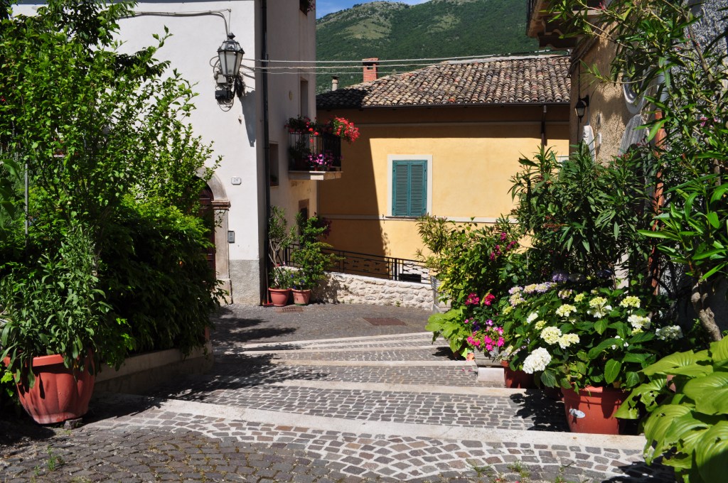 Pettorano sits in the middle of the Riserva Naturale Regionale Monte Genzana e Alto Gizio, a natural park that follows the River Gizio and through the hills. The men of the town used to go into the hills to make charcoal, and there is a little church dedicated to the town’s patron saint, Santa Margherita, there. In November 1943 (World War II), the Nazis threw the residents out of the town, causing them to flee into the mountains. For more than six cold winter weeks, the Pettoranese survived in caves or tiny sheds that they built.