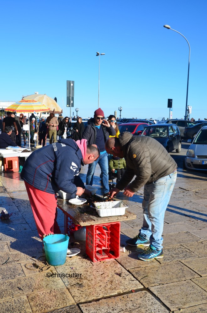 Also in the Porto Vecchio is a daily seafood market. Each morning, fishermen set up plastic tables, stacked boxes, and more from which they sell octopus, mussels, sea urchins, oysters, shrimp, cuttlefish, and any other fish they caught that day. People buy it and eat it raw right on the dock. No offense, but yuck.