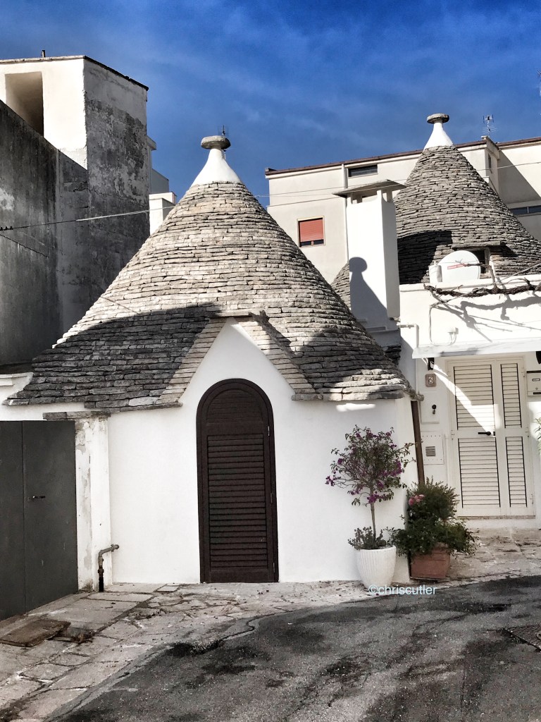 About 35 miles southwest and inland of Bari is the small town of Alberobello which is famous for its conical white houses—trulli—that date to the 15th century. The ruler of the area at that time forced the peasants to build homes without using mortar, and the residents found that the round shape was not only easy to build but also able to support the conical roof.