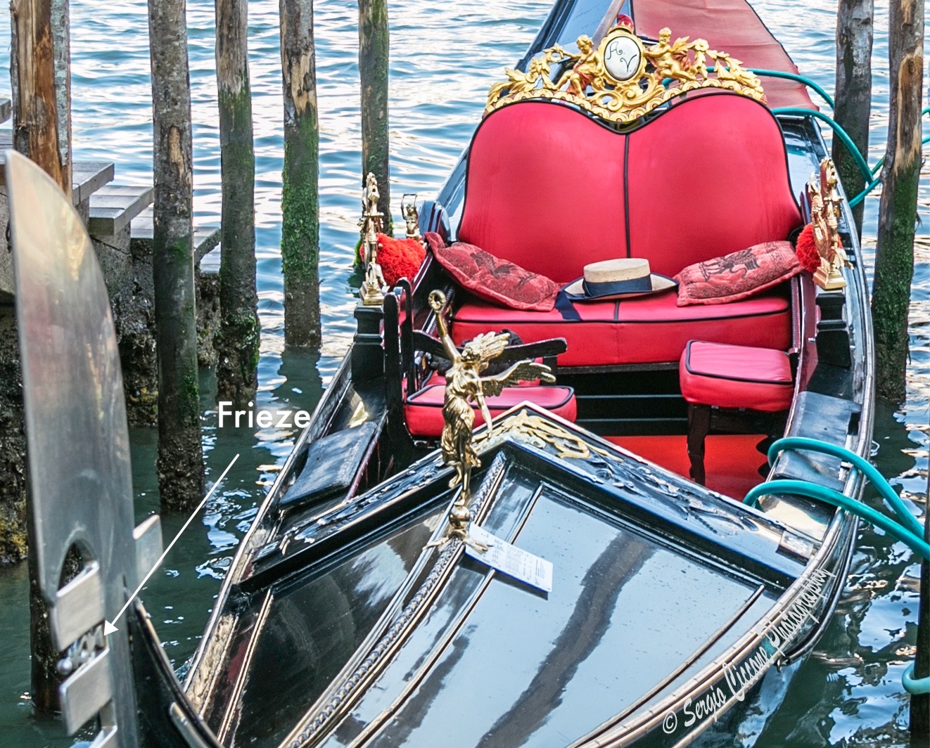 Some of the ferro have three frieze between the prongs (Above). The frieze celebrate the three islands in the Venetian Lagoon—Murano, Burano, and Torcello.