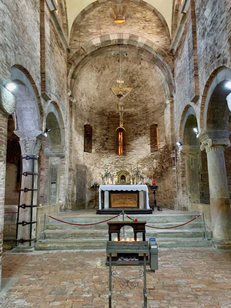 If you look at the photo, you can see that the altar in this church also sits at the top of the stairs. The grate below the altar is where San Petronius’s remains rested until the diocese moved them to the basilica that bears his name in Piazza Maggiore.