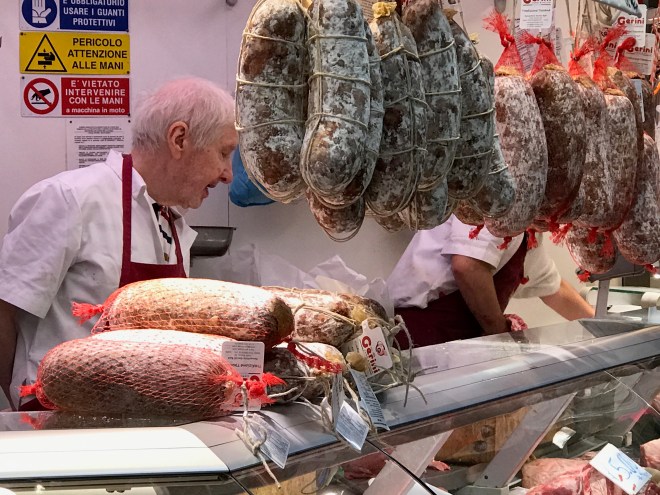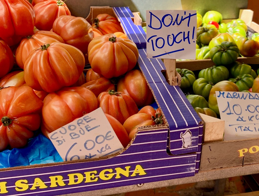I had one woman with me a few years ago who didn’t listen to that piece of advice and picked up a tomato in the Mercato di Mezzo in Bologna. She sent the vendor into a tirade that stopped only when I made her buy said tomato. Mamma Mia!