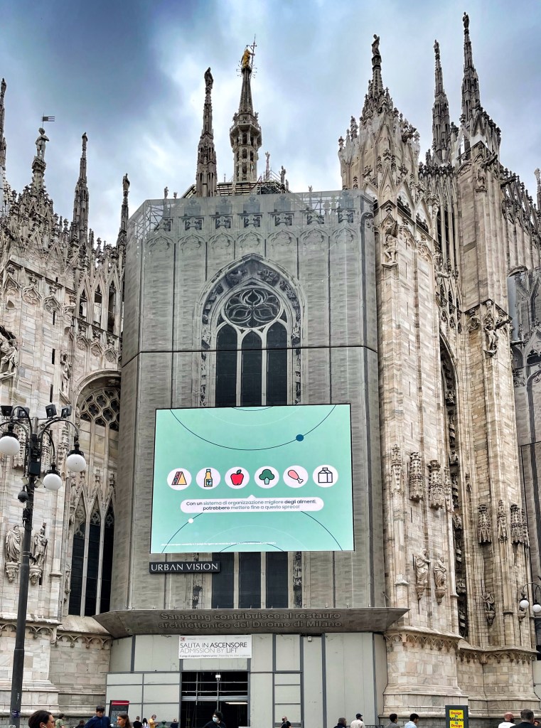 “Mildred, look! A digital billboard! It’s much more interesting watching something we don’t understand than touring the Duomo. Let’s stay here and watch it.”
