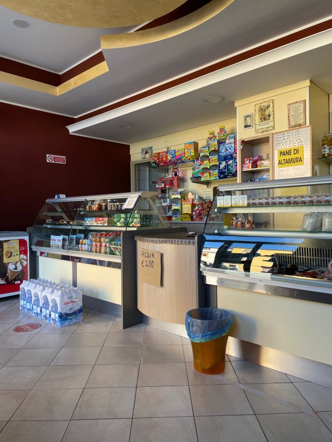 While we ate, we watched as people continually entered the panificio, ordered bread or rolls or panini, grabbed cold drinks from the cooler, paid, and left.