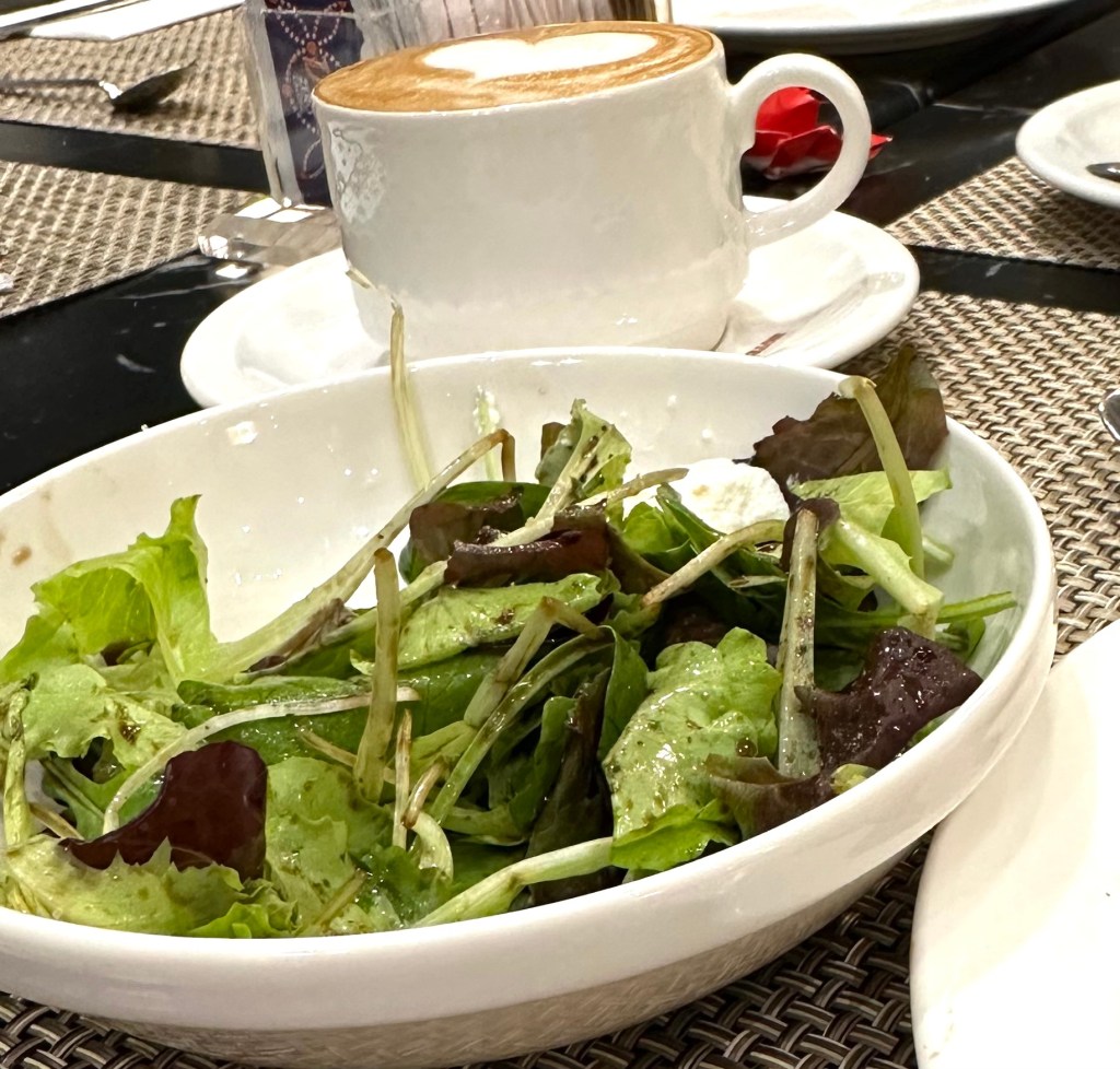 I’m currently in Milano waiting for my new group, and I’ve had salad for breakfast each morning. In addition, yesterday I enjoyed sauteed spinach. Today, they had fresh green beans on the table.