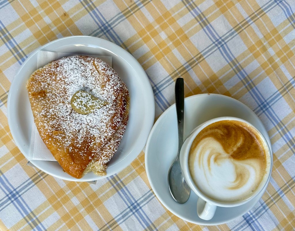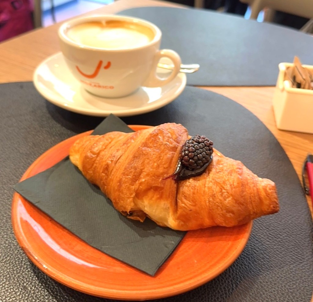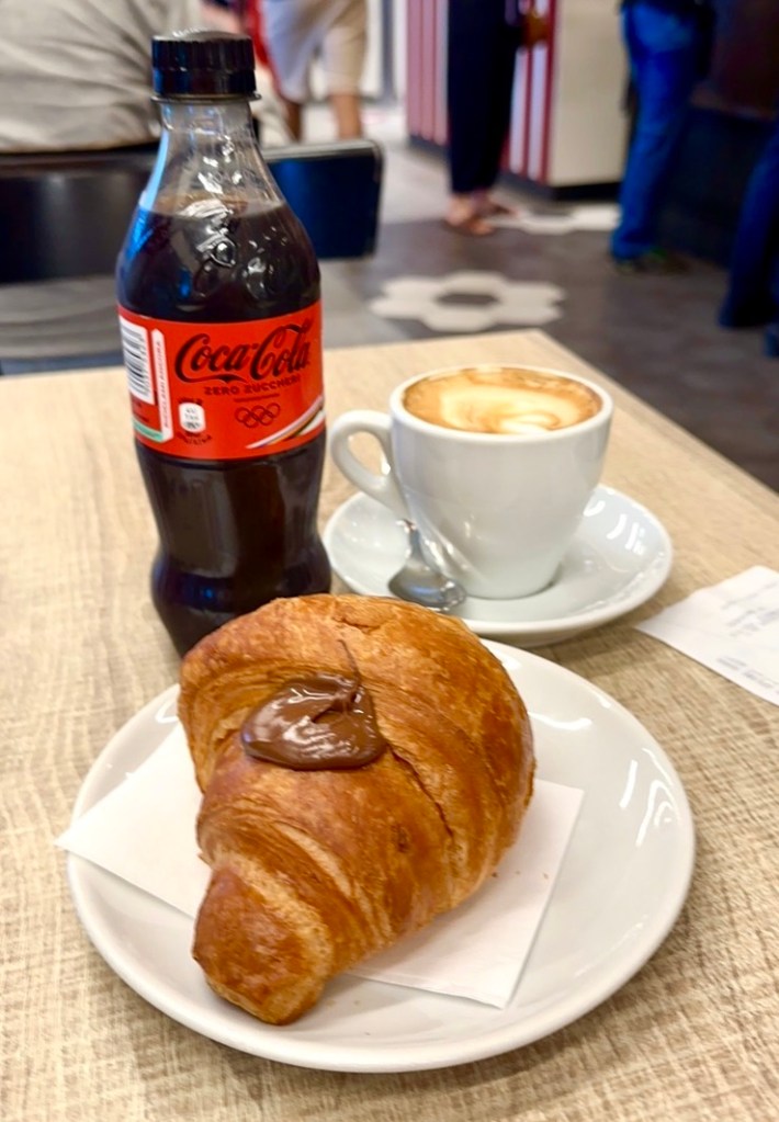 The first time Mike and I came to Italy, I practically fell over seeing the wonderful croissants (called brioche here, for the most part) filled with jams, Nutella, pistachio cream, vanilla cream. Flaky beyond belief, they were a great addition to my mornings. Unfortunately, they were also a great addition to the number of calories I consumed that first year. I had to learn to cut back, and over the years, I try to order just a cappuccino or a cappuccino and mini brioche (if they have one) if my will power is nil.