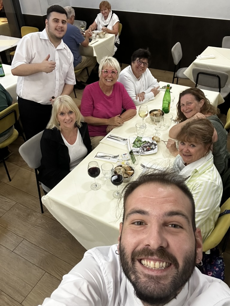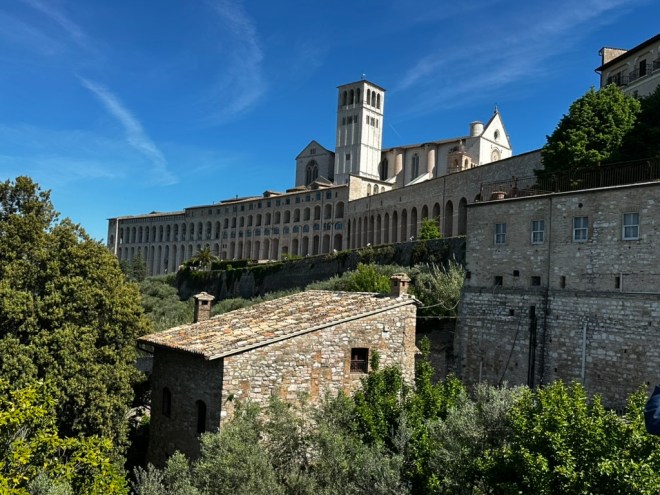 Two members of my last group lost out on going to Assisi to visit the basilicas of Saints Francis and Clare due to a nationwide transportation strike. Trains, subways, buses, and taxis all had a work stoppage on September 22 to protest the genocide in Palestine. While there was a possibility that their outbound train would have taken them to Assisi, the return most likely would not have been running. They did make the best of it by going to mass in St. Peter’s and then exploring the basilica.
