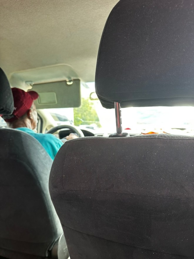 The taxi had the official license—TAXI 245—but that was about the only good thing about it. The front driver’s side had a big dent, the inside was dingy, and the doors were barely operative. Oh, they opened and closed, but only if Lionel (the driver) opened them from the outside. One was stuck in child-proof mode, so he had to open it. The other would open from the inside, but if you did, the inside cover would fall off.