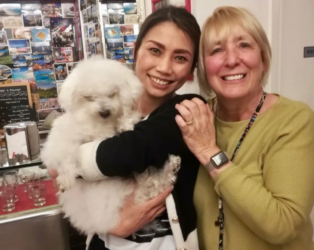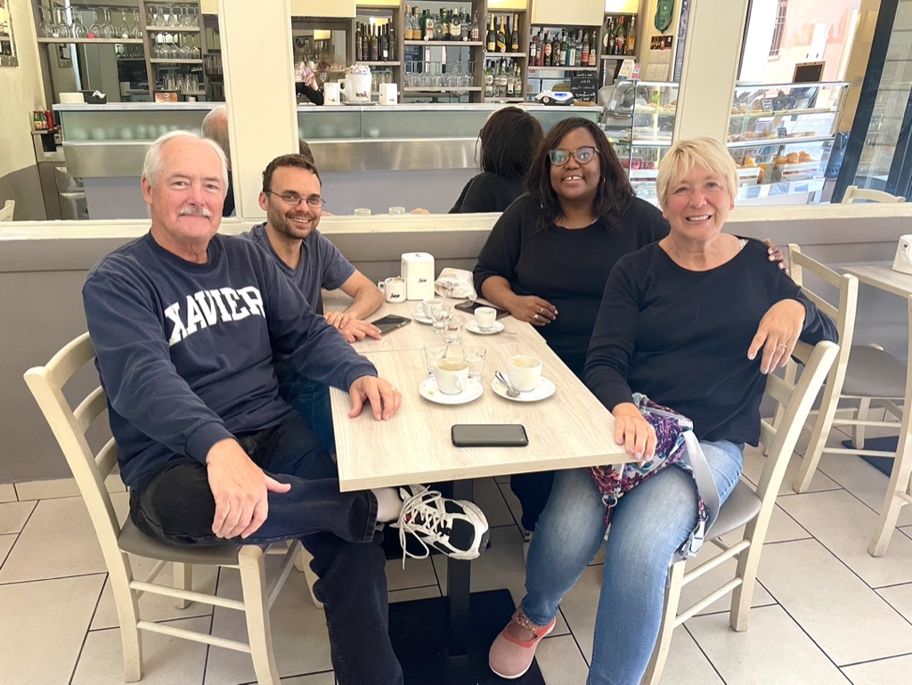 But, Giovanni is not the only friend I made. The morning after I arrived in Bologna to study Italian (2014), I waltzed into a bar next to my apartment. At the time, the old owner was in the process of turning over the bar to the new owners, Cesare and Lili. Cesare, one of the most outgoing people I have ever met, welcomed me and got me a cappuccino. Since he was from Barcelona, I was thrilled since I could talk to him in Spanish. Long story short, we gradually transferred conversations to Italian, and he and Lili became two great friends. They have had me to their home for dinners (Lili is a wonderful cook), and the include me in so much. (And introduced me to Giovanni P, another great friend.)