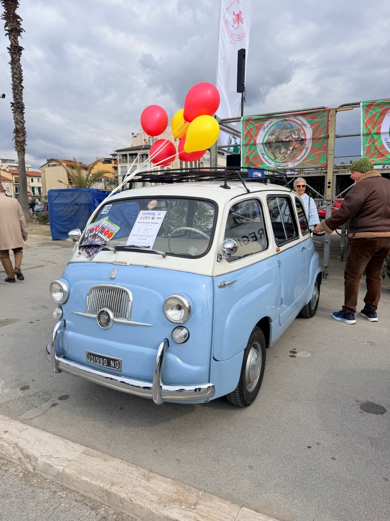 Luckily for me, we missed being in Viareggio during carnevale by a week. (Side note: In case you are not aware, I do not do well with crowds.) We did, however, walk along the beach a bit before we headed to the main corso where we stumbled upon an antique car show.