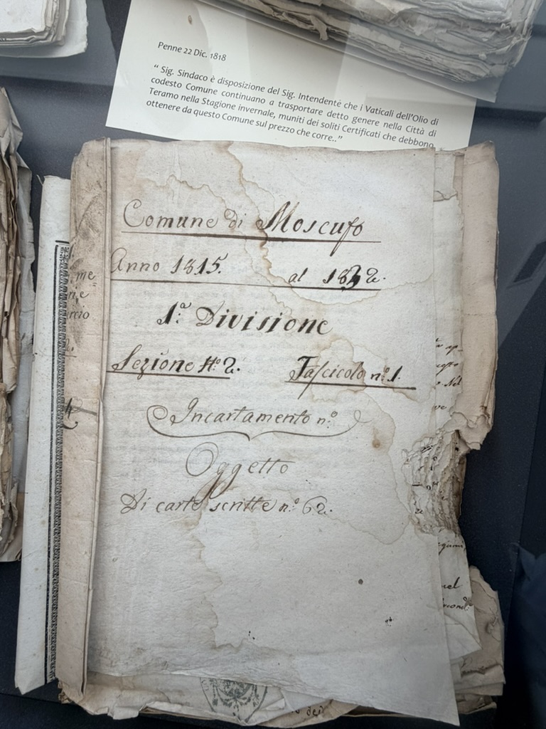 So, last Tuesday, we left Bologna and headed to Pescara for a few days. Davide, with no help from me, arranged a visit for us to Moscufo on Saturday (April 18). He and his mom, Lidia, picked Mike and me up in Pescara and took us to the town where my great-aunt settled after her return to Italy in 1911. While Moscufo is in the same region as Pettorano (Abruzzo), it is some distance from Zia’s hometown and in a different province (Pescara instead of L’Aquila).
